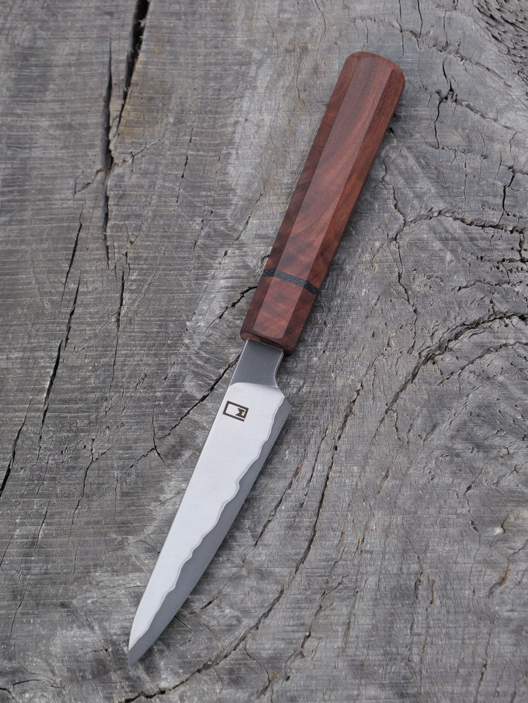 Paring Knife / Japanese Shotoh – Stainless clad, carbon core Aogami Super Blue with Walnut and Bog Oak